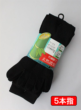 「竹で消臭綿で丈夫」ショートメッシュ5本指靴下3足組クロ |